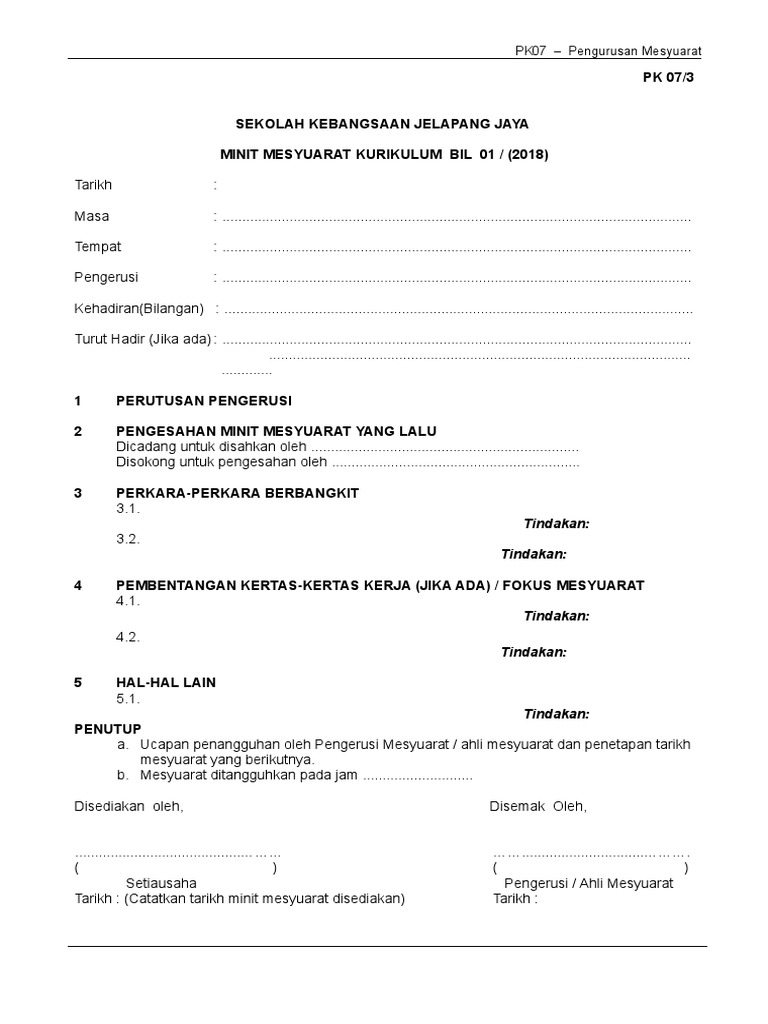 Borang Pk 07 3 Contoh Format Minit Mesyuarat Kuri