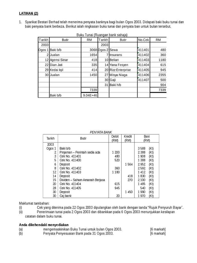 Prinsip Perakaunan Penyata Penyesuaian Bank Dengan Kemaskini Buku Tunai Cute766