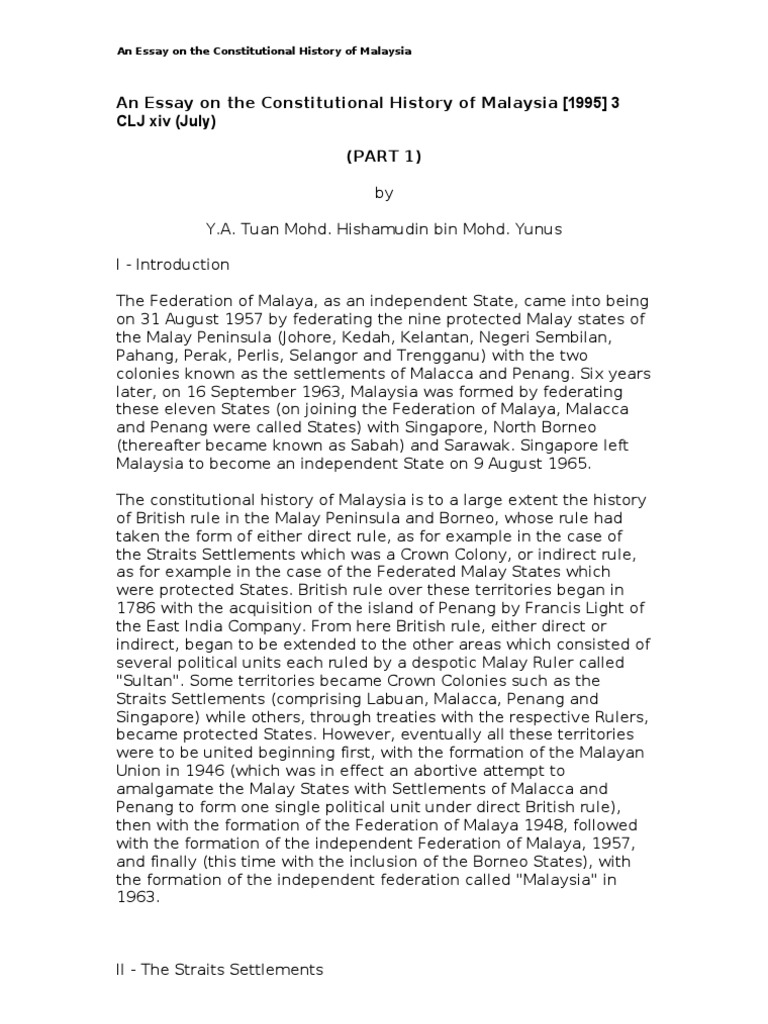 An Essay On The Constitutional History Of Malaysia Malaysia Social Institutions