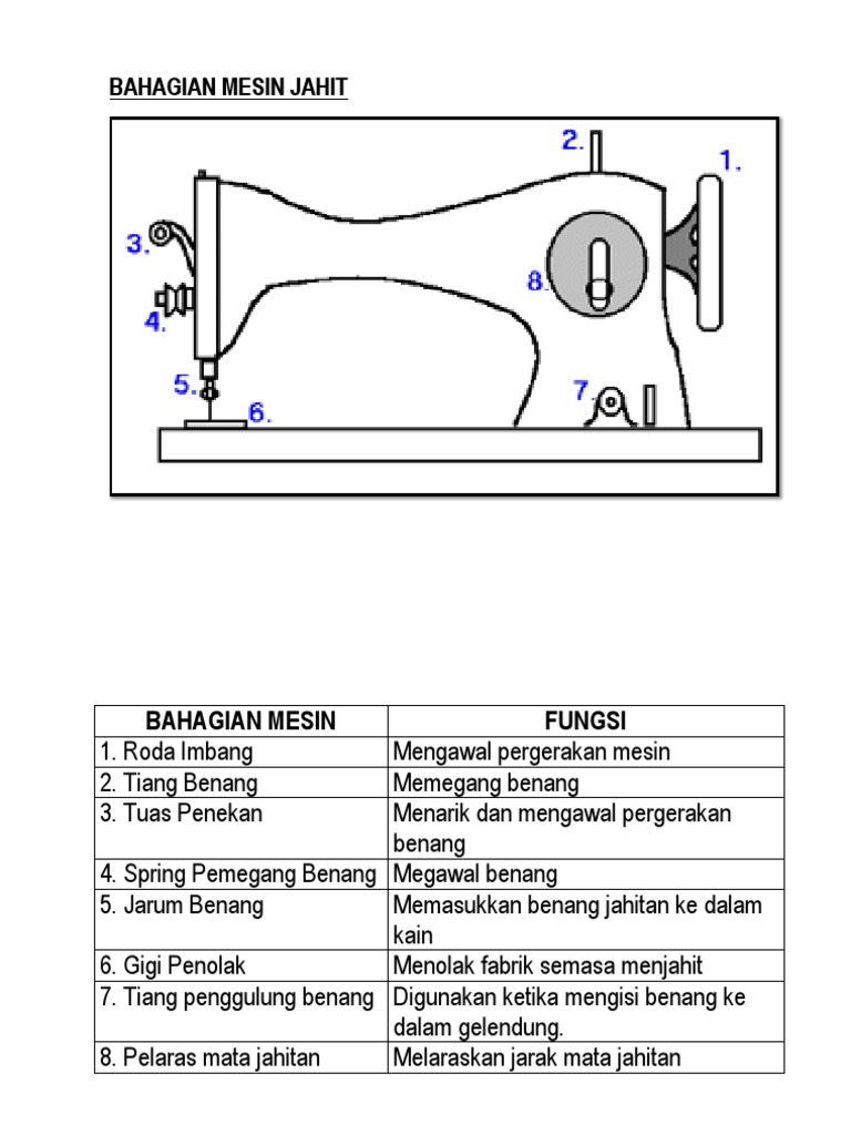 Khb Ert Fungsi Bahagian Mesin Jahit