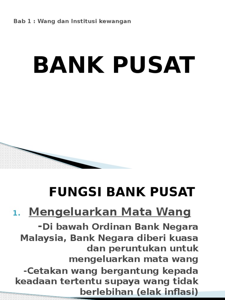 Bank Pusat Bab 1 Wang Dan Institusi Kewangan