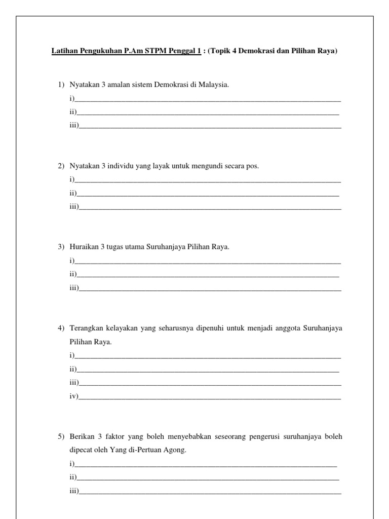 Latihan Pengukuhan P Am Stpm Penggal 1 Topik 4 Demokrasi Dan Pilihan Raya