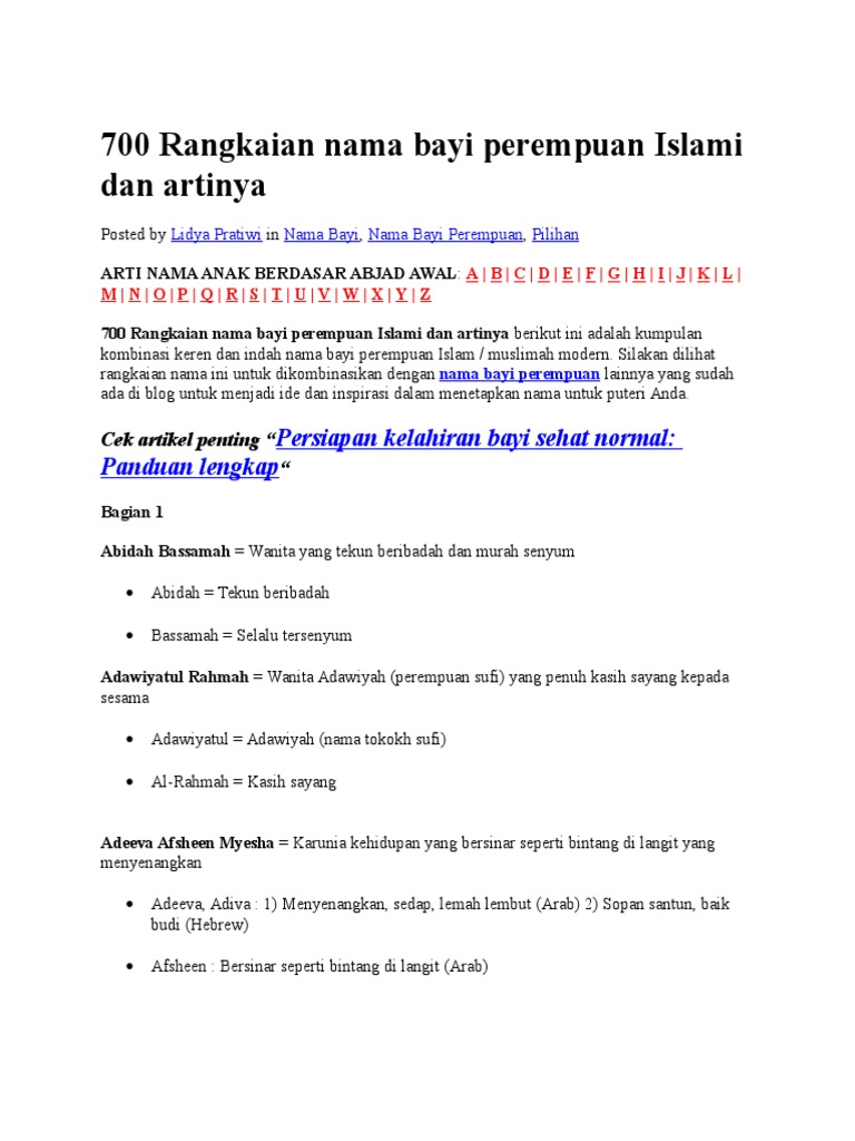 Doc Gabungan Nama Bayi Perempuan Islami Modern Dan Artinya Wiins Bujang Academia Edu