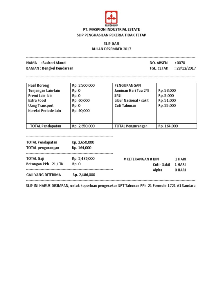 Contoh Slip Gaji Karyawan Terlengkap Guru Word Pdf Excel