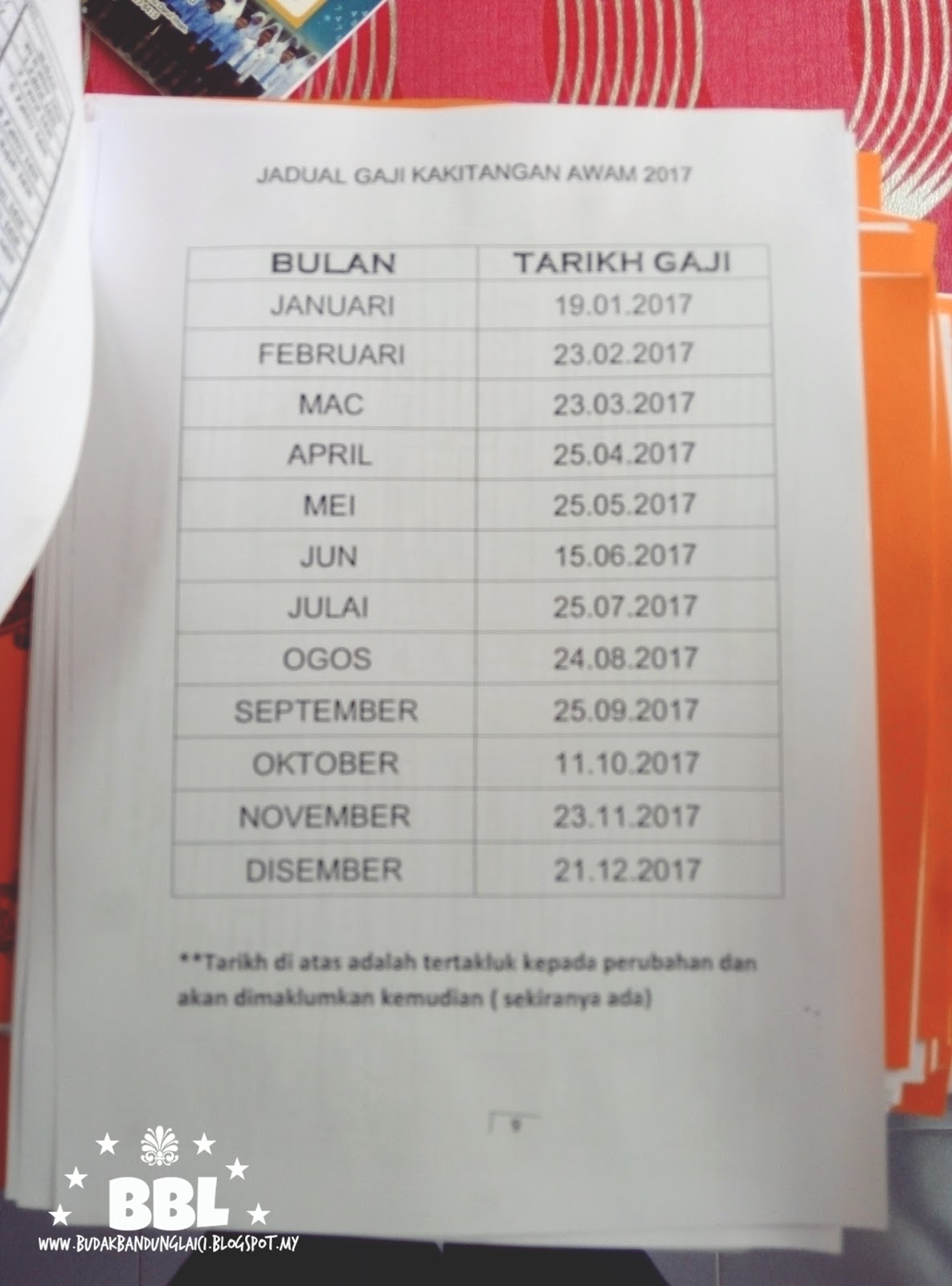 Dalila In The House Jadual Pembayaran Gaji Penjawat Awam 2017
