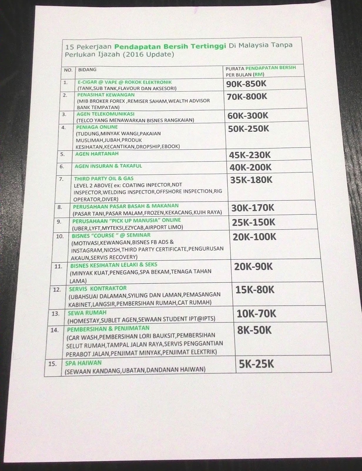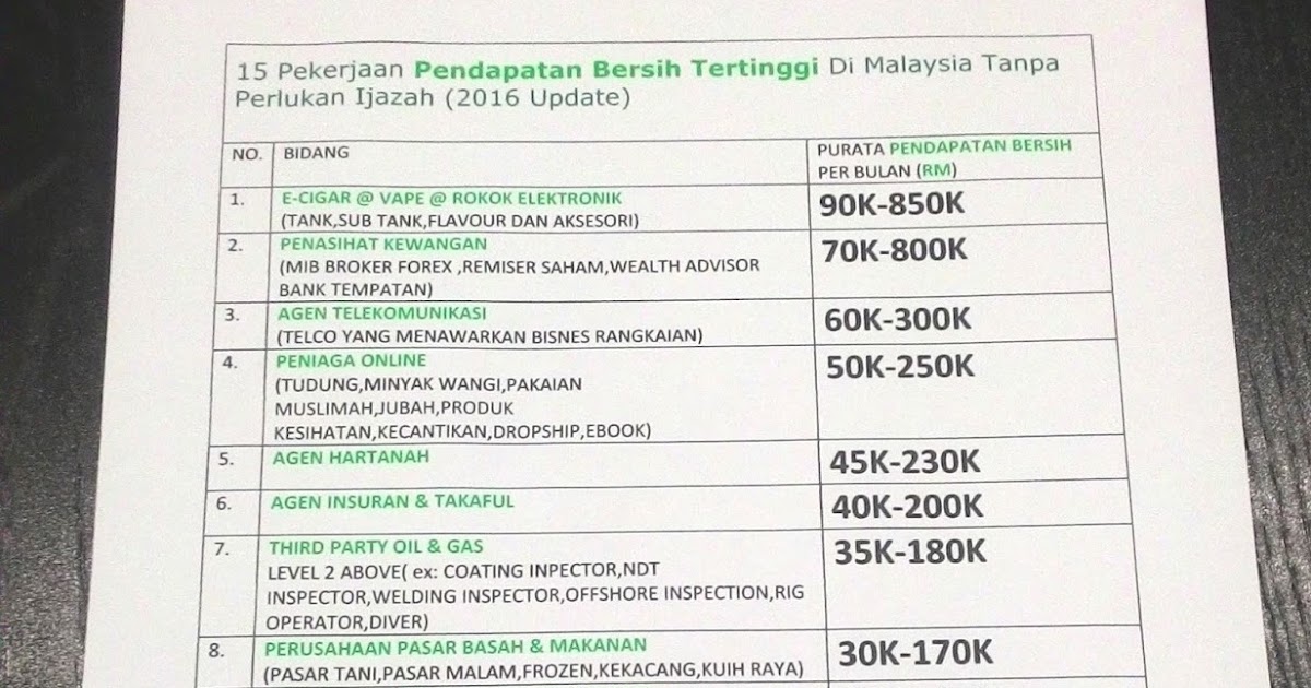 15 Pekerjaan Pendapatan Bersih Tertinggi Di Malaysia Tanpa Perlukan Ijazah 2016 Update