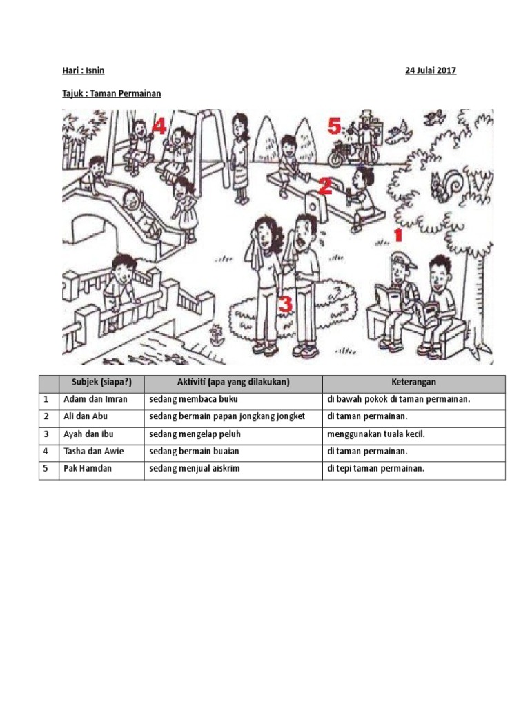 Gambar Di Bawah Menunjukkan Aktiviti Yang Dilakukan Di Taman Permainan Tulis Lima Ayat Yang Lengkap Mengenai Aktiviti Aktiviti Yang Dijalankan Berdasarkan Gambar Di Bawah