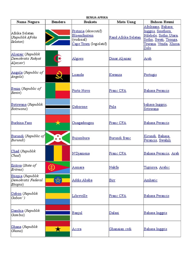 Negara Di Benua Afrika Dan Ibukotanya Daftar Negara