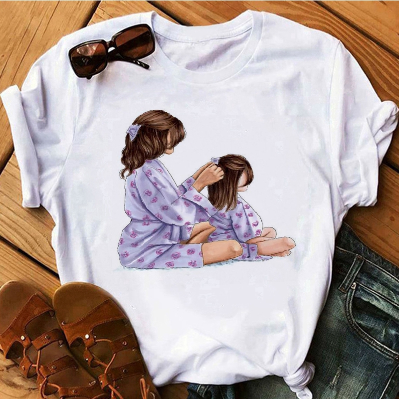 Kaos T Shirt Casual Ibu Dan Anak Perempuan Lucu Lengan Pendek Gambar Kartun Shopee Indonesia