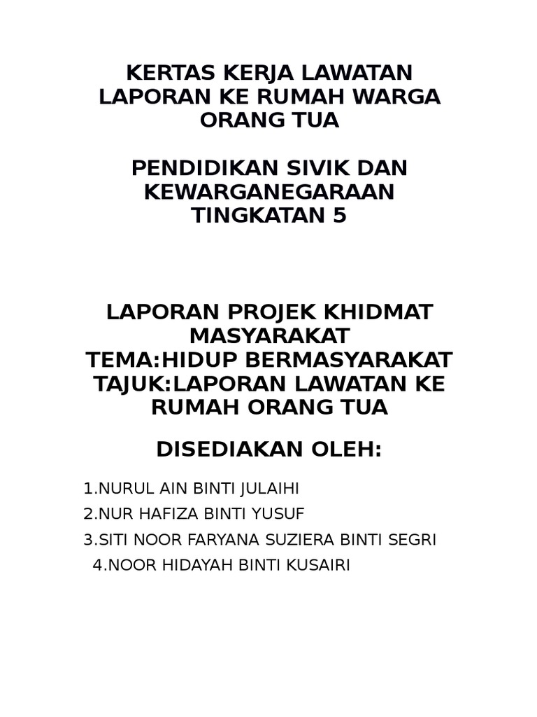 Kertas Kerja Lawatan Laporan Ke Rumah Warga Orang Tua